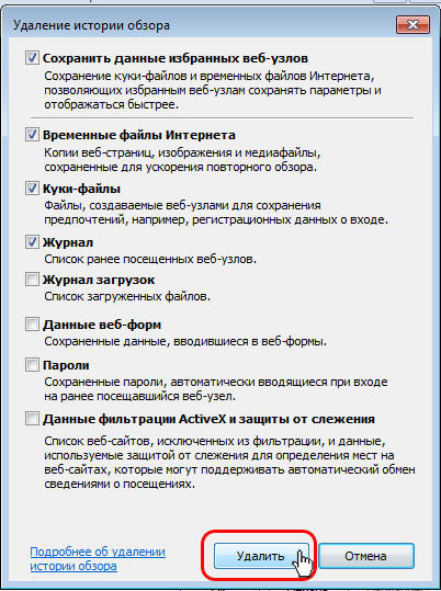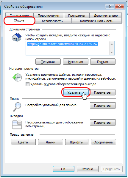 Чтобы удалить временные файлы в браузере Internet Explorer