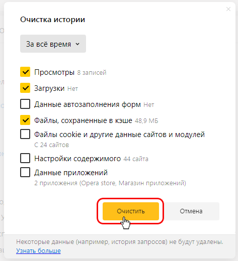 Чтобы удалить временные файлы в браузере Yandex.Browser